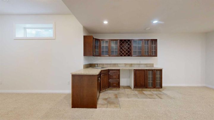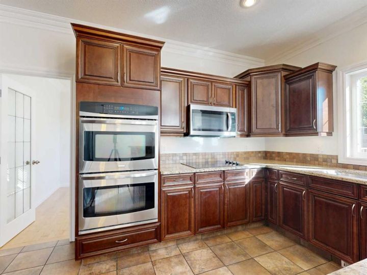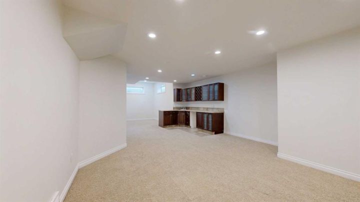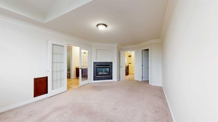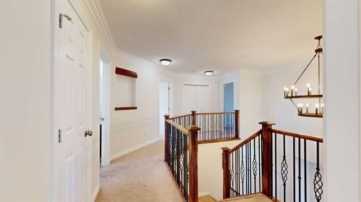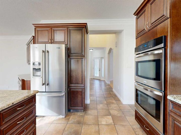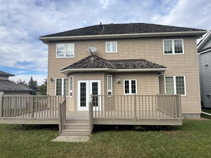 Prepare to be captivated by this exquisite, custom-built residence offering 2,200+ sq ft of unparalleled elegance and comfort in the sought-after community of Wedgewood. Step through a regal entrance featuring a stunning tiled foyer and a dramatic staircase highlighted by an intricate wrought iron railing. The main level invites relaxation and entertaining with a formal living room centered around a cozy gas fireplace and showcasing hardwood flooring. The heart of the home is the chef's kitchen, a culinary dream equipped with: granite countertops, two built-in wall ovens, flat top stove, sleek under-cabinet lighting, practical eating bar, and stainless steel appliances. An adjacent, bright dining area flows seamlessly through to the large deck and backyard, perfect for memorable gatherings. Convenience is key with valuable main floor office space, a dedicated laundry area with sink & ample countertops and separate, 2- piece powder room. Ascend to the upper level to discover the lavish primary bedroom, a true sanctuary featuring its own gas fireplace for a touch of romance. The suite includes a huge walk-in, customized closet offering exceptional storage and organization. The accompanying luxurious spa-inspired ensuite offers the ultimate in relaxation with a jetted tub, a tiled, jetted shower, double sinks and a private water closet. Main bathroom, hall closets and three spacious additional bedrooms complete the upper floor, providing ample space for family or guests. The fully developed basement is an entertainer's paradise, boasting a stylish entertainment bar, large, private fifth bedroom with a roomy closet, and well-appointed full bathroom. For year-round comfort, both the basement and the oversized double garage feature in-floor heating. For the summer heat, there is air conditioning to help you stay cool. Interior was just freshly painted making it truly move-in ready. This home isn't just a house; it's a lifestyle, offering grandeur living at a truly reasonable price. Don't miss the chance to make it yours!