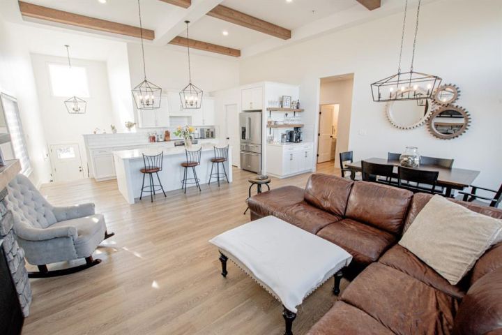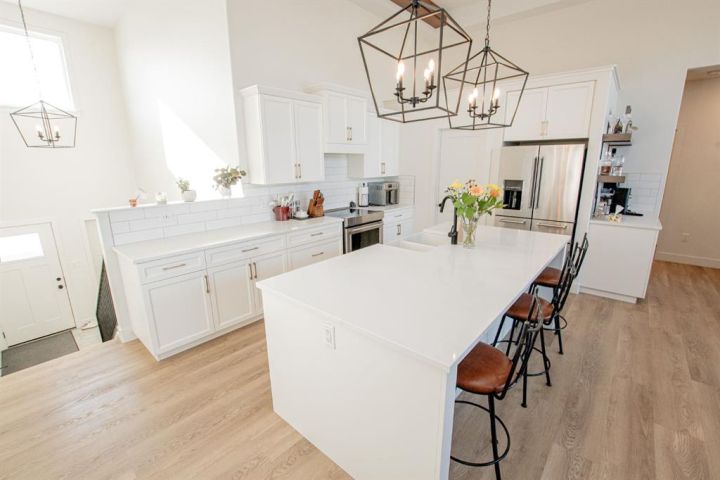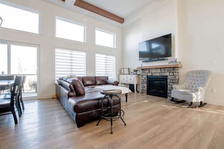 Welcome to this impressive modified bi-level home in the family orientated subdivision of Whispering Ridge — where space, style, and comfort come together. The Hendrix by High Mark Homes features 1757sq ft of thoughtfully designed living area, this residence delivers on both form and function. The gourmet kitchen is a chef’s dream — abundant cabinetry, a massive quartz island, pantry storage, extended counter space and newly updated stainless steel appliances including an induction stove. The layout flows seamlessly into the dining and living areas, perfect for entertaining or family life. Step into the expansive great room with soaring ceilings and exposed timber beams. Multiple oversized windows flood the space with natural light, and a cozy fireplace anchors the room for warmth and ambiance. The primary bedroom is conveniently located on the main floor and features a luxurious 5-piece ensuite that leads into a spacious walk-in closet. The ensuite includes a tiled double-head shower, a standalone soaker tub, dual vanities, and a private water closet. Just steps from the master suite, the laundry room is strategically positioned between the walk-in closet and the hallway for effortless access and daily convenience. Upstairs, you’ll discover two generously sized bedrooms and a full bathroom. The basement is partially finished with a rec room, plumbed for a 4pc bath with tub already installed, bedroom, theatre room wired for speakers and utility room. The oversized triple heated garage is built for more than just parking — it features hot/cold water taps, floor drains that tie into the sewer, and a rear access door to the yard. You’ll find space to convert part of it into a workshop or storage area without sacrificing vehicle parking. Nestled in the heart of Whispering Ridge, this home enjoys a developing, modern neighborhood setting. It offers both privacy and a growing community atmosphere.