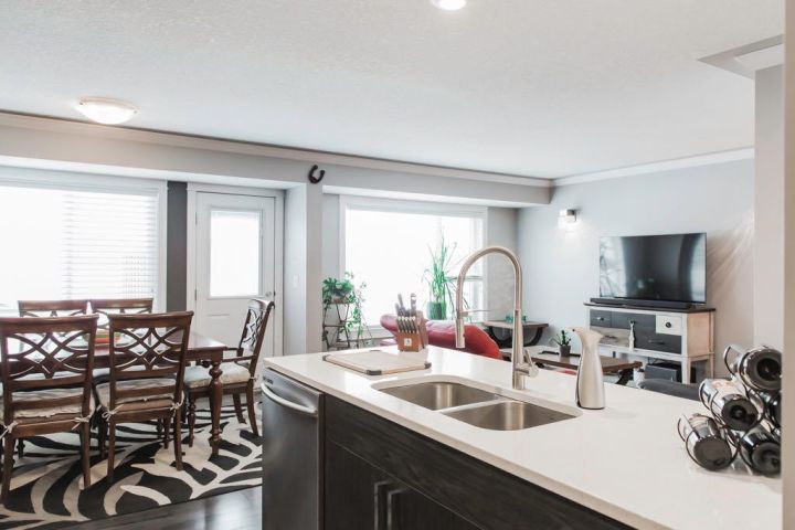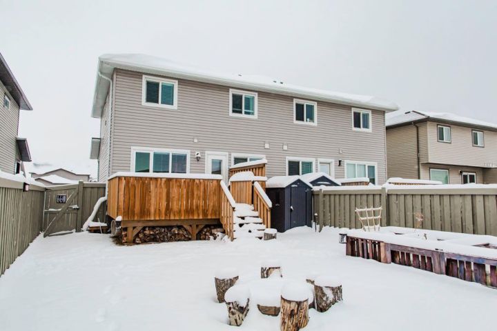 Take a look at this modern duplex in Riverstone South! This home offers a beautiful modern interior featuring a great floor plan. The main level has 2 entries (garage and main), a pantry, open concept living/kitchen/dining area with great natural light. Upstairs you will find a roomy master suite with a walk-in closet and en-suite. The upstairs level has an additional 2 bedrooms, full bathroom and laundry room. The basement is unfinished but has good potential to be developed. The private back yard has no rear neighbors. And the front yard is nicely landscaped, has a large driveway and large garage. This is an original owner home and has been meticulously cared for. Come have a look today.