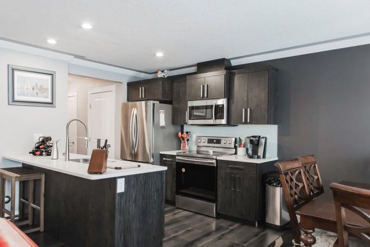 fridge, stove, dishwasher, washer, dryer, blinds, curtain rods